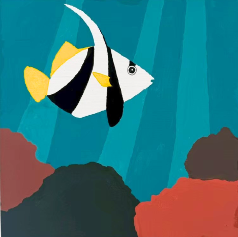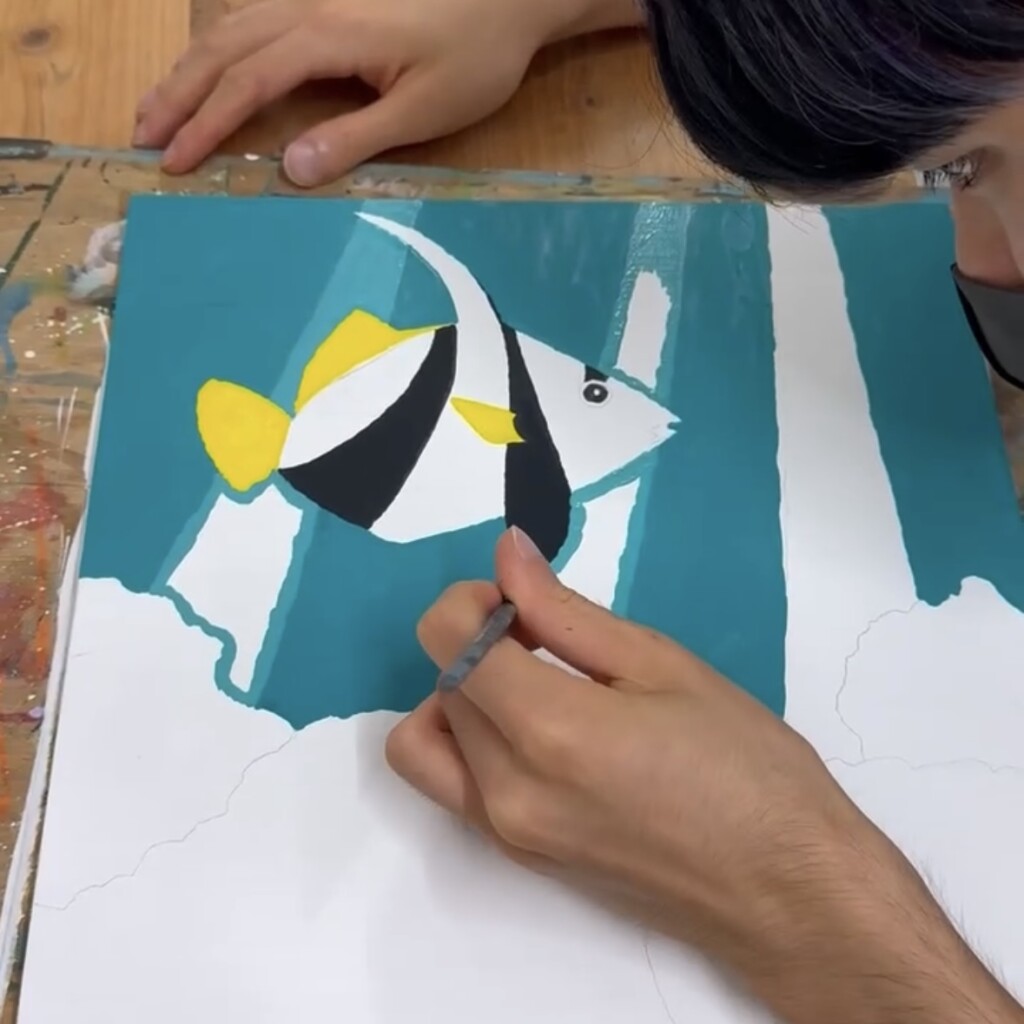 僕は普段は自分から生き物はほぼ描かないのですが、今回魚を描こうとなり、アイディアを探しに調べていたら、ふと「熱帯魚」を思い出しました。熱帯魚の中でも個人的に一番見た目が好きだった、「ハタタテダイ」を見つけ、描くことにしました。