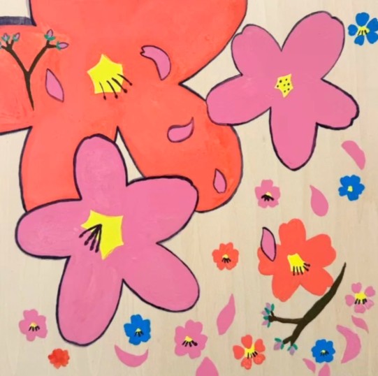 水彩絵の具やアクリル絵の具を使い淡く抽象的な作品から、カラフルなオリジナルキャラクターを描いた 作品まで、幅広い表現の作品を描く。